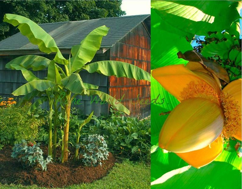 Japanese Fiber Banana or Musa Basjoo is a dramatic tropical looking banana capable of growing 15 ft+ in one season from the root bulb or trunk after dying back in the winter months. It is very cold hardy below 0 degrees F.